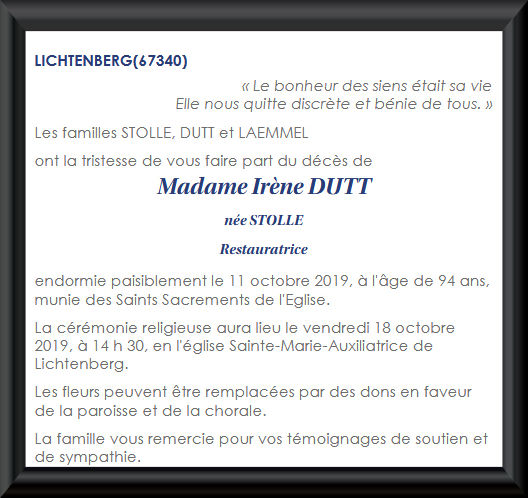 depuis 1890 en possession de la famille Stollé